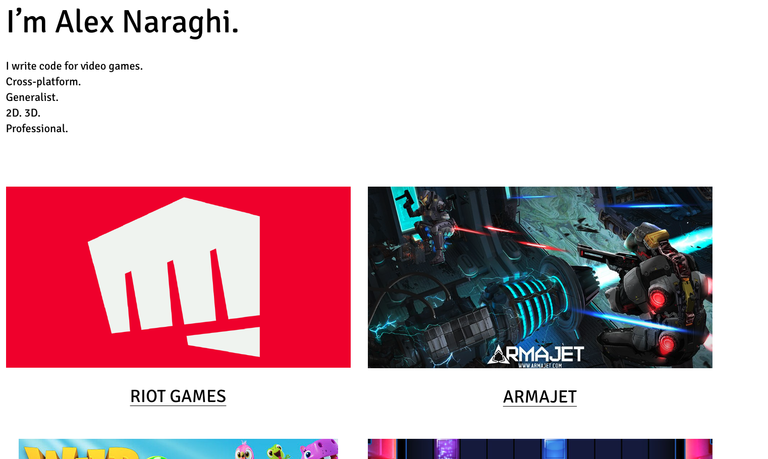 Software engineer Alex Naraghi’s profile features a selection of his best work. Each eye-catching image can be clicked to access more information about the project: