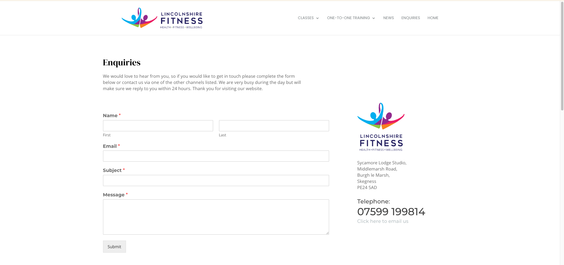 Here’s a great example from Lincolnshire Fitness of how to provide a clear way for potential customers to get in touch. Several contact options are provided, including a clickable email link.