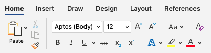 You can access the font menu from the ‘Home’ tab in Microsoft Word: