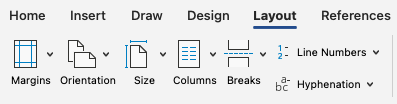 Both page size and margin settings can be found under the ‘Layout’ tab: