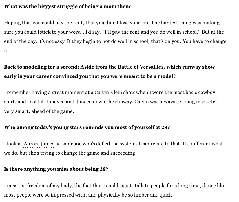 Bustle is a lifestyle and entertainment site with interviews, articles, and blog posts. Each has a blend of curated pictures, quotes, and emboldened interview questions. They are skilled in transforming large chunks of text into visually exciting and skim-friendly reads.