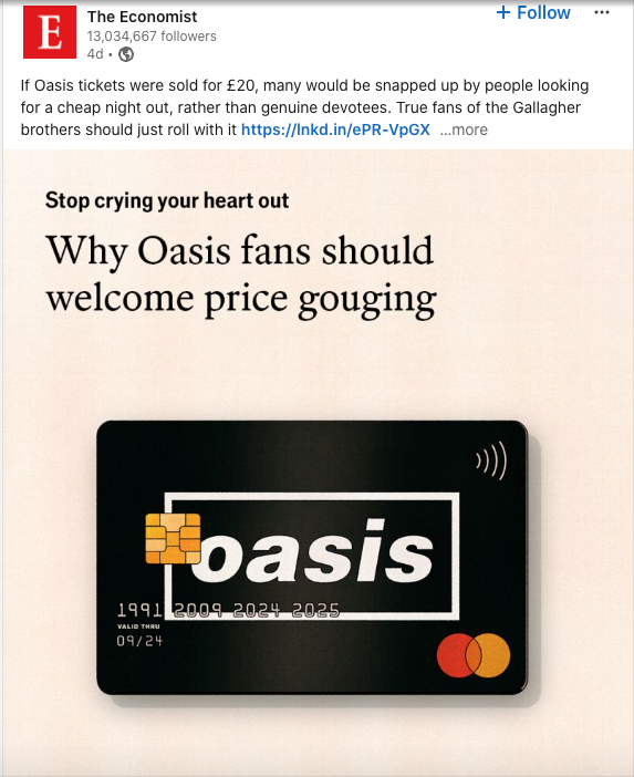 This LinkedIn post from The Economist makes great use of popular culture references and a hot topic.